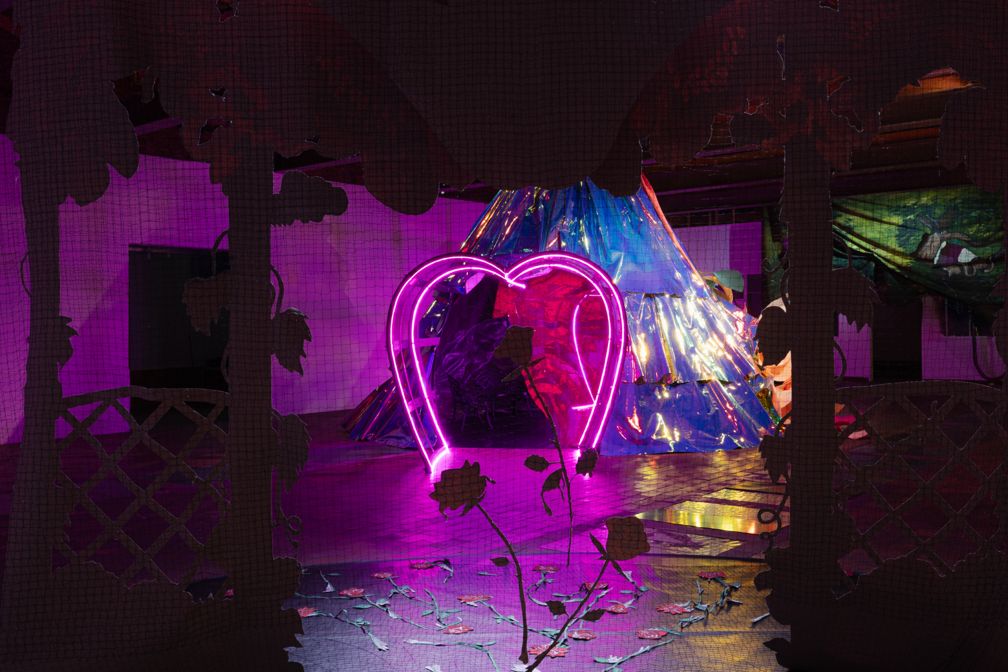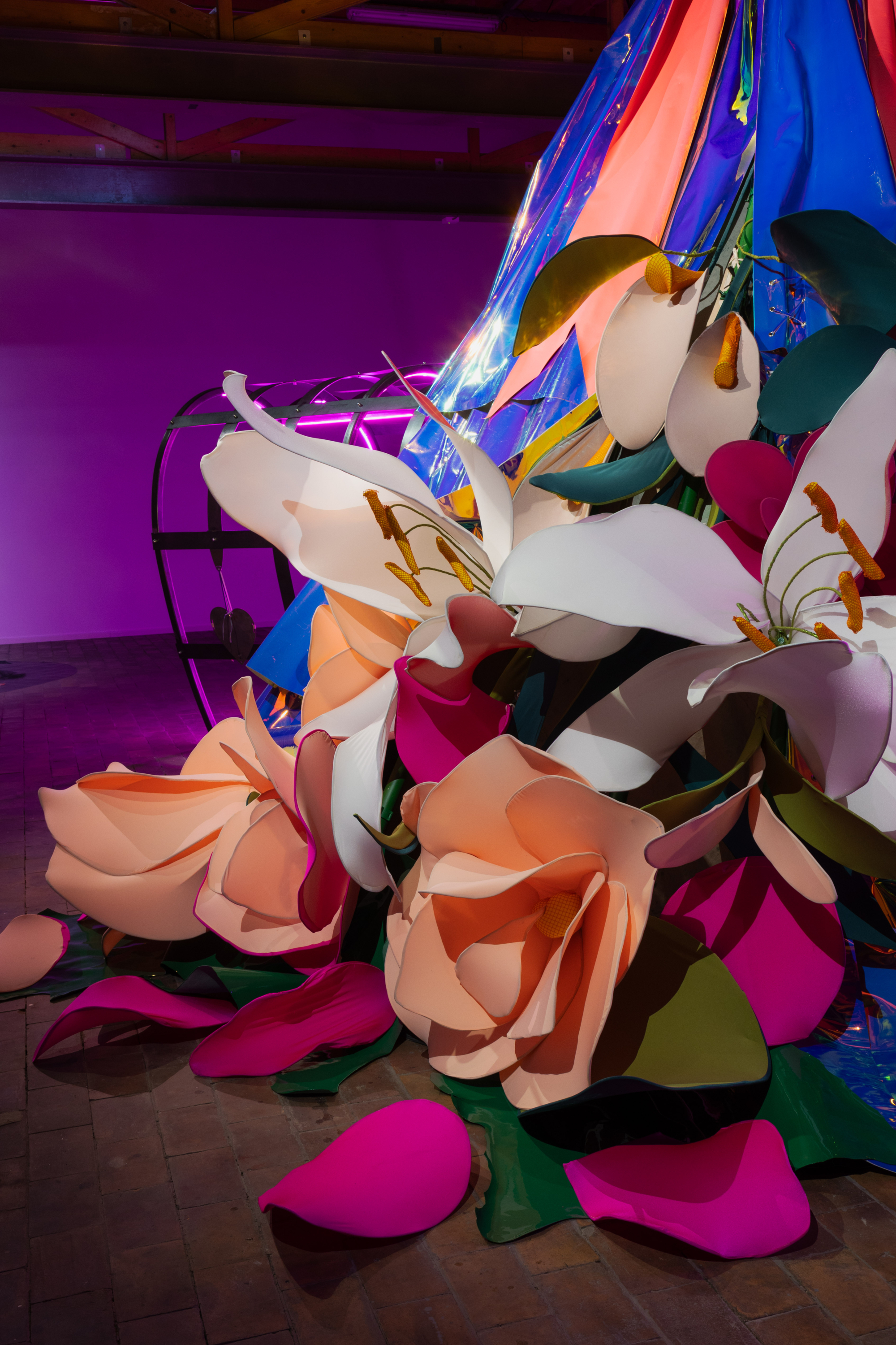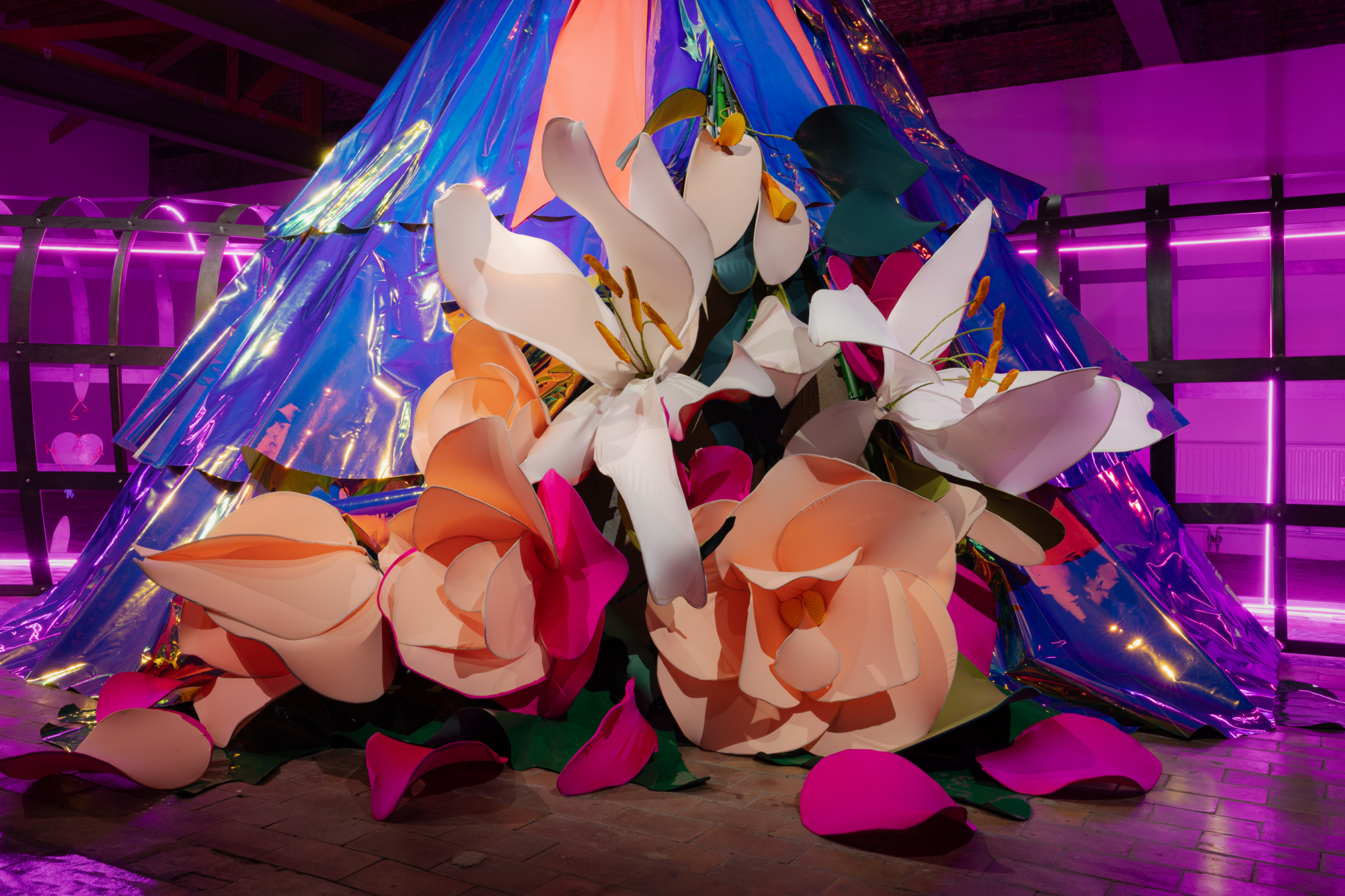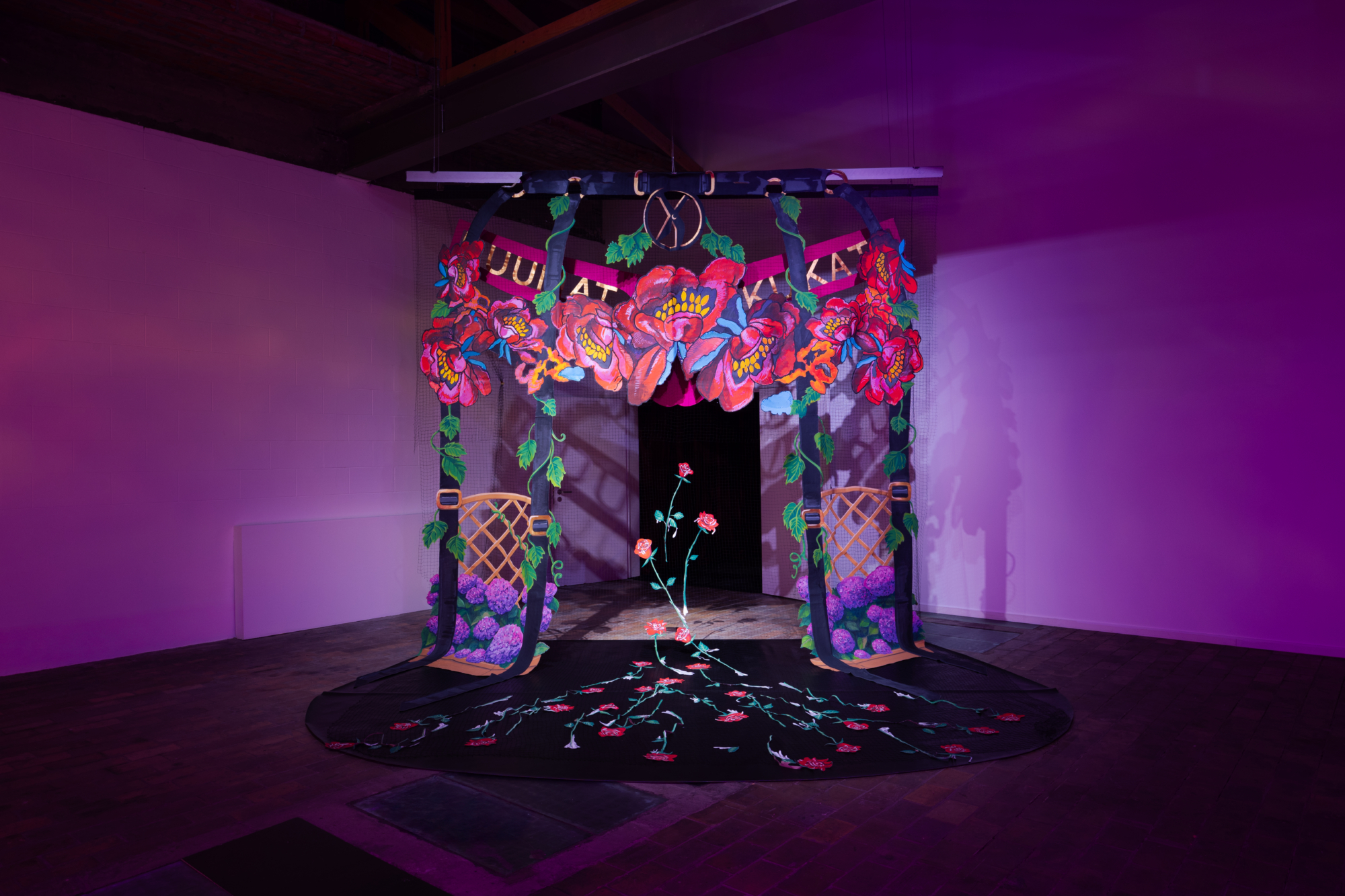 Unfolding as a world of symbolic reversals and ritual transformations, Dress to Kill immerses viewers in a lush scenography of flowers, fabrics, bodies, and voices. The result is a feminist imaginary where vulnerability and strength, collectivity and difference, are in constant interplay.